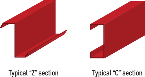 Structural C and Z section purlins are made using high quality tensile galvanized steel. The C purlins are in the shape of a ‘C’, whereas the Z purlins are in the shape of a ‘Z’.